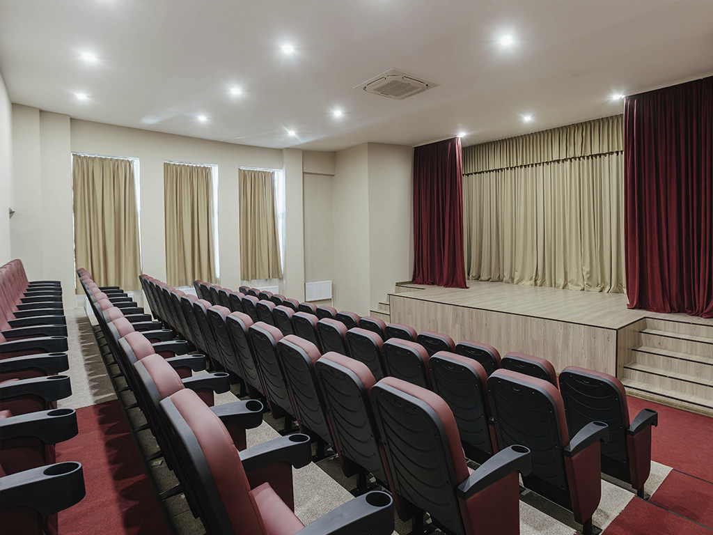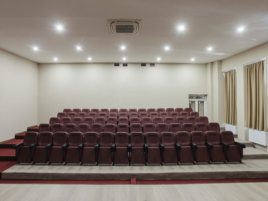 Мы верим, что кинозал с амфитеатральной рассадкой — это именно то место, где магия большого экрана смешивается с уютной атмосферой гостеприимства нашего отеля. Откройте для себя новый уровень впечатлений от кинопросмотра с нами!