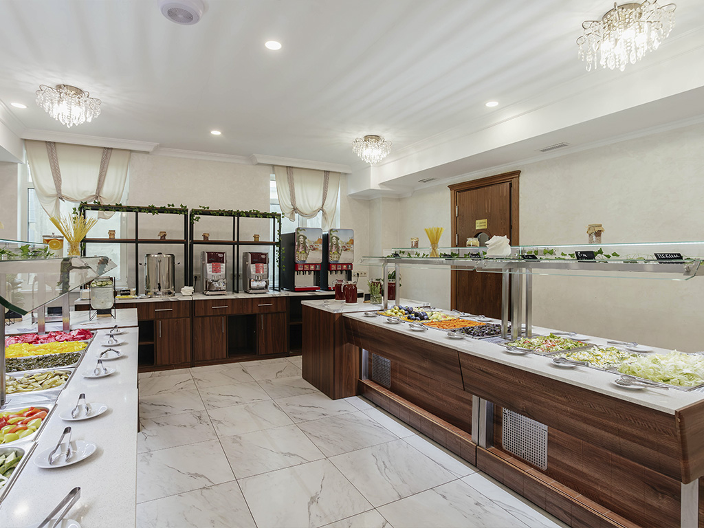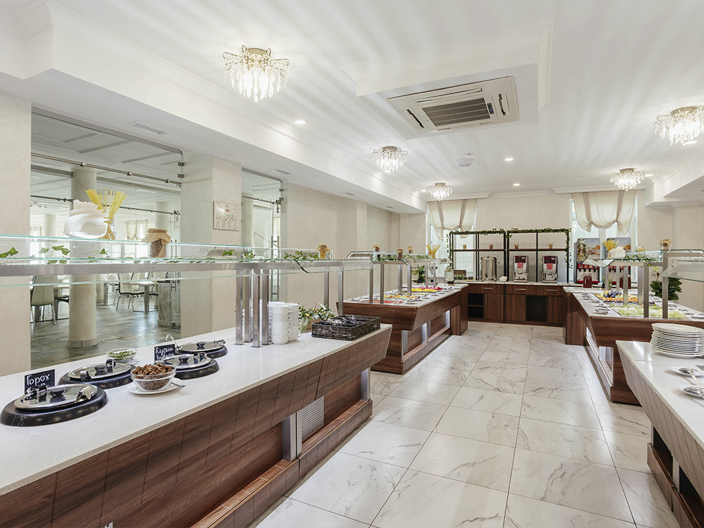 Ресторан с открытой террасой и прекрасным видом на море. Здесь проходит основной прием пищи для гостей отеля. Большое разнообразие блюд, станция здорового питания и холодное игристое для гостей ежедневно.
