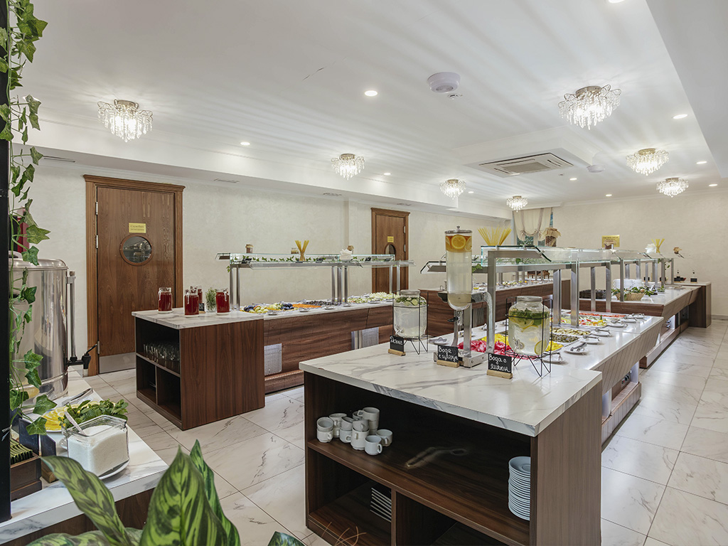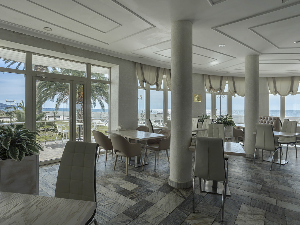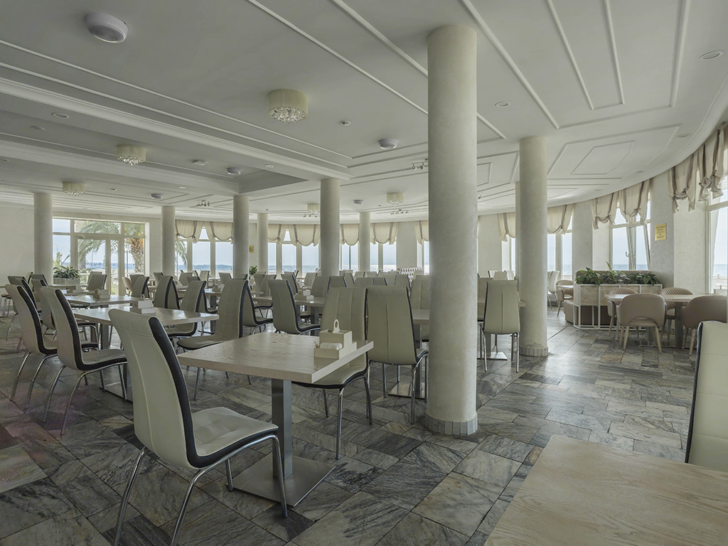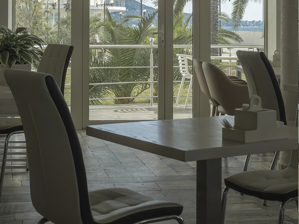 С видом на море предлагает специальное меню, но гости также могут насладиться блюдами из меню a la carte. В летний сезон гости и жители города Гагры могут насладиться прекрасным видом и морским бризом, сидя на открытой террасе. Меню террасы разнообразно выбором оригинальной пиццы, пасты, изысканного кебаба, домашнего мороженого и других популярных блюд, которые вам обязательно придутся по вкусу, ведь на свежем воздухе вся еда кажется намного вкуснее.Наслаждайтесь вкусной едой на открытом воздухе, любуясь меняющимися оттенками морского горизонта.