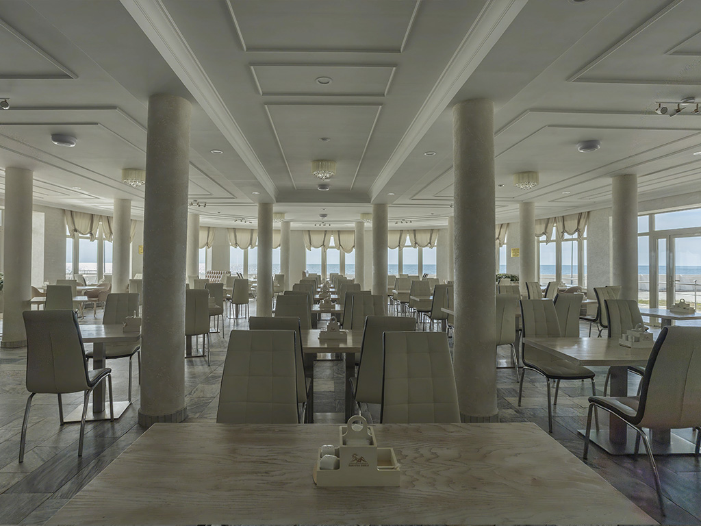 Посвящен подлинному вкусу и характеру средиземноморской кухни. Меню не ограничивается известными блюдами и исследует различные рецепты таких стран, как Франция, Италия, Испания и Греция. Еда здесь напоминает о средиземноморском солнце, которое создает идеальное сочетание вкуса и аромата. Даже цвета тщательно подобраны и четко передают атмосферу лазурного побережья. Ведь изысканная кухня ассоциируется не только с отменным вкусом, но и с потрясающей кулинарной подачей. Яркие и сбалансированные блюда доставят Вам изысканное удовольствие и настроят на позитивный лад. Потрясающий морской пейзаж открывается из панорамных окон. С одной стороны – вид на Гагру, с другой – вид на Сочи.