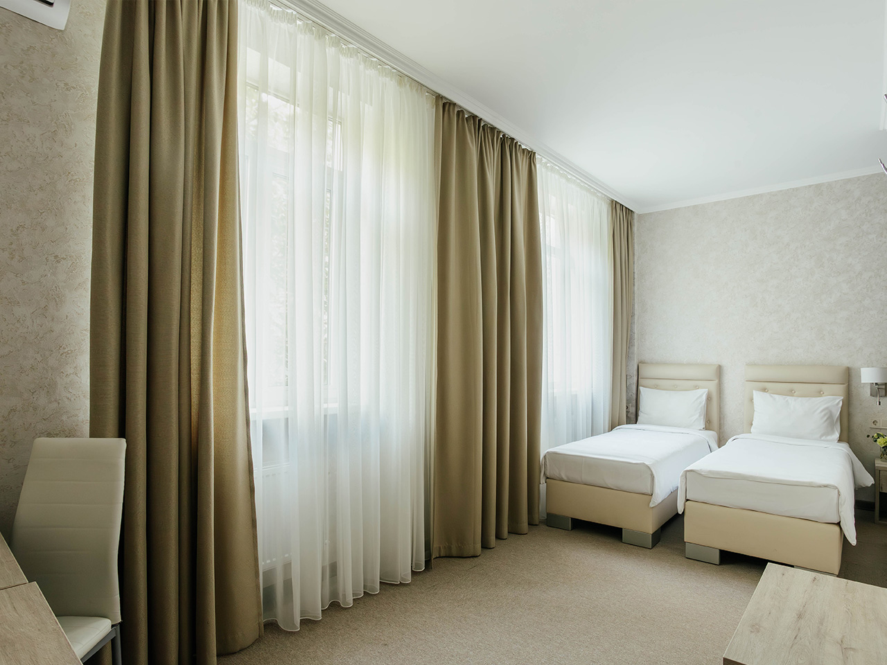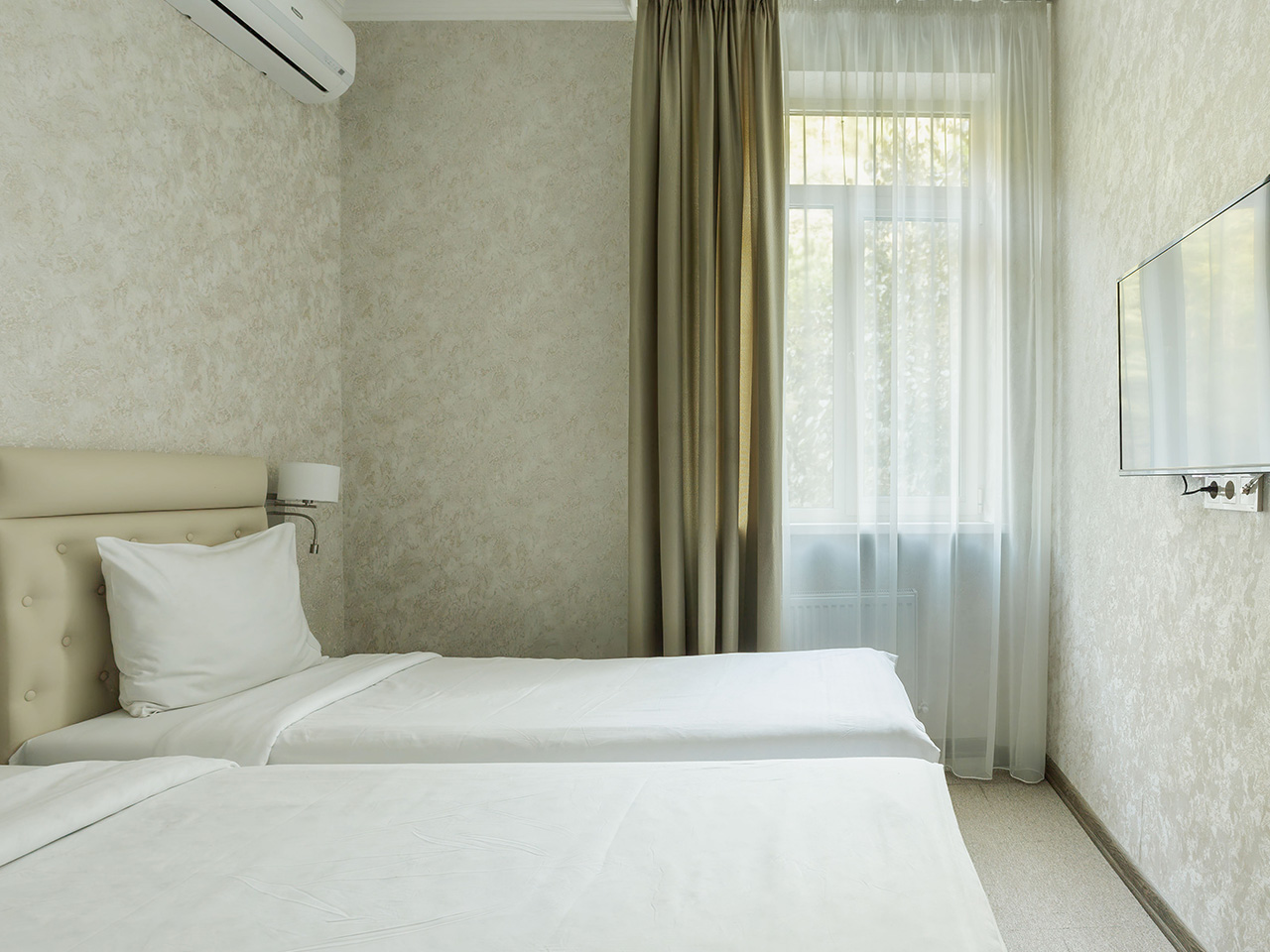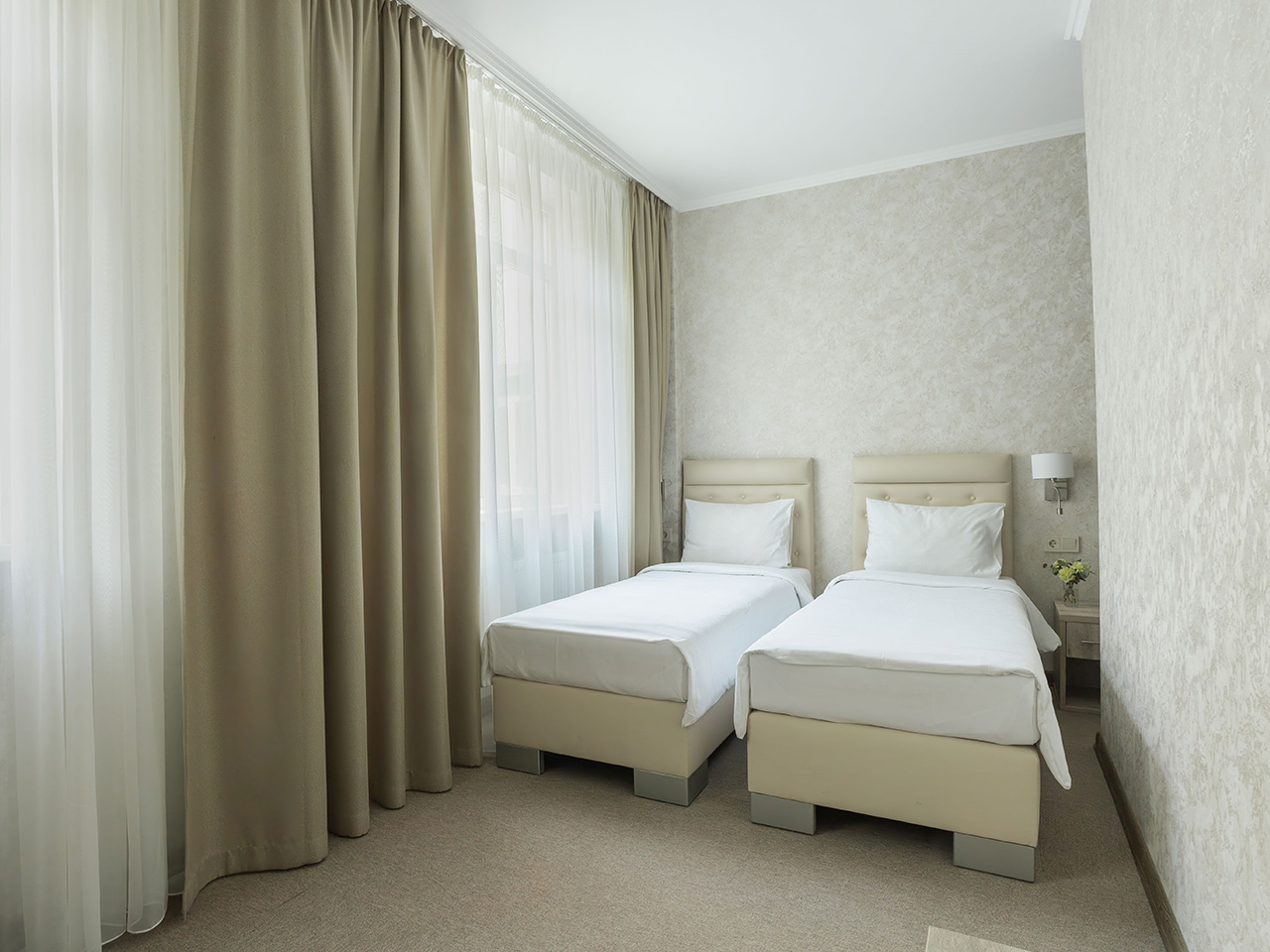 Конфигурация и мебелирование номеров могут отличаться, в некоторых номерах в одной из комнат может не быть окна.