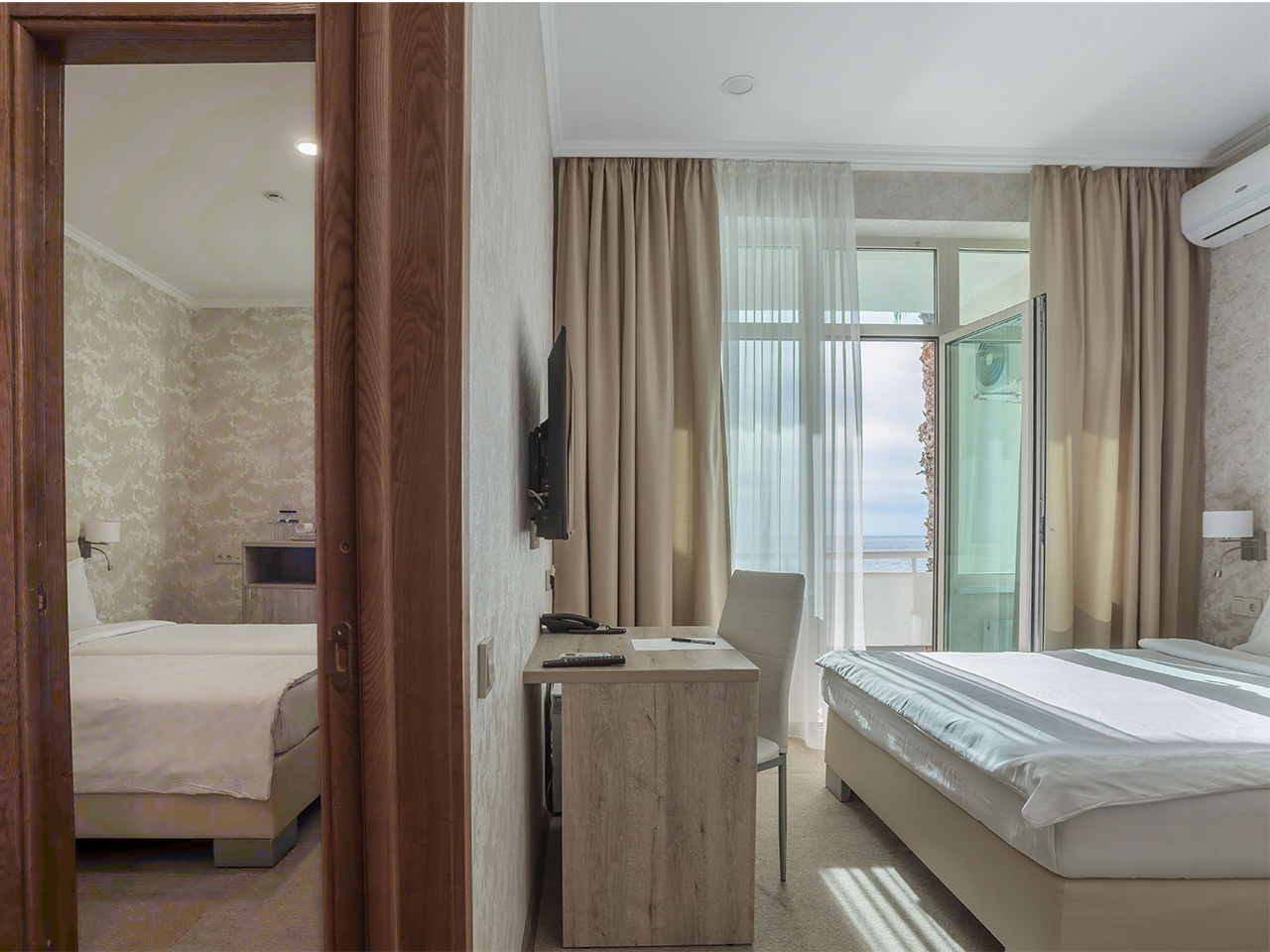 Номер прекрасно подойдет как для семейного отдыха, так и для командировки с комфортом. Прекрасный вид на море, балкон.