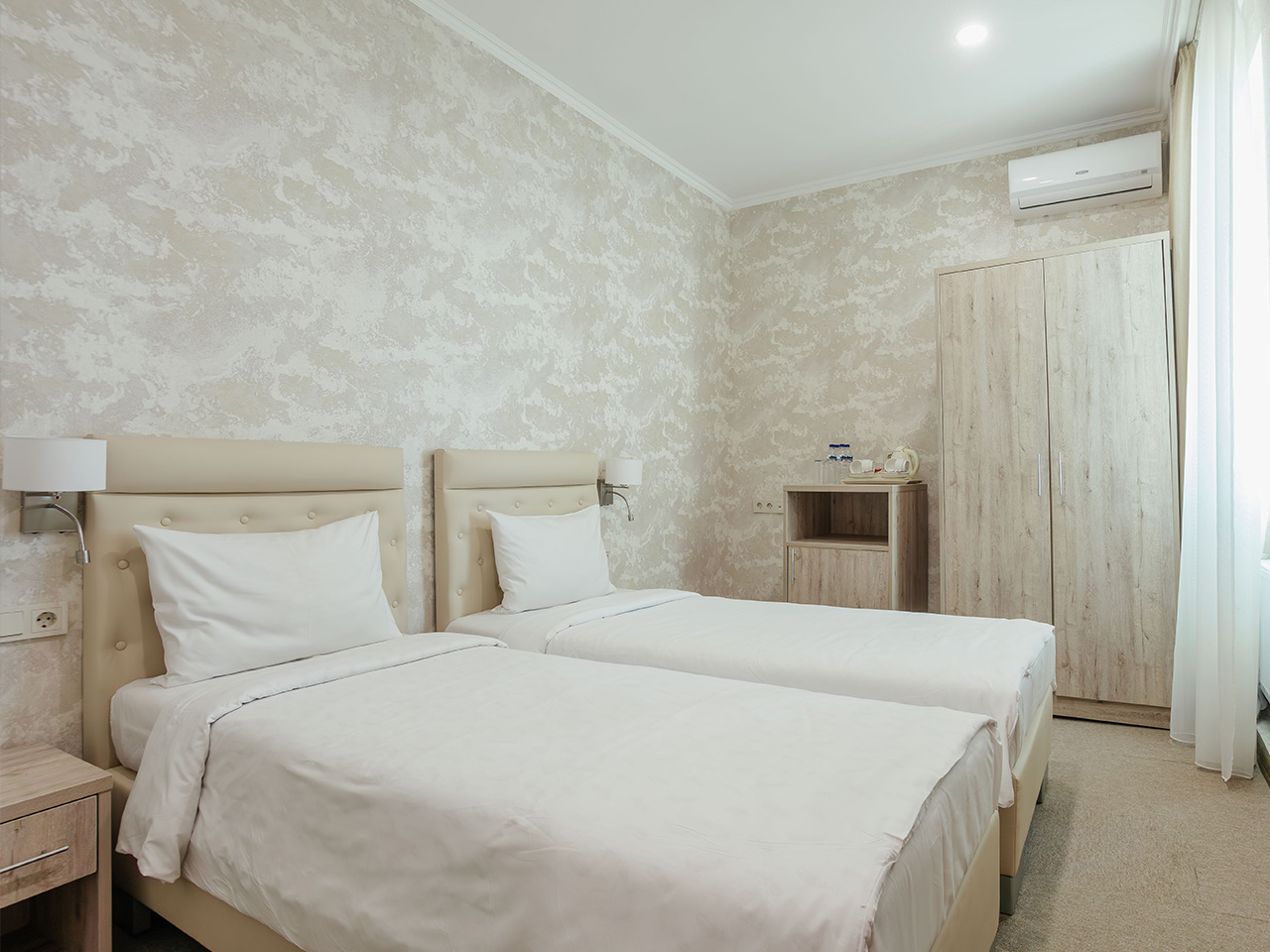 Конфигурация и мебелирование номеров могут отличаться, в некоторых номерах в одной из комнат может не быть окна.