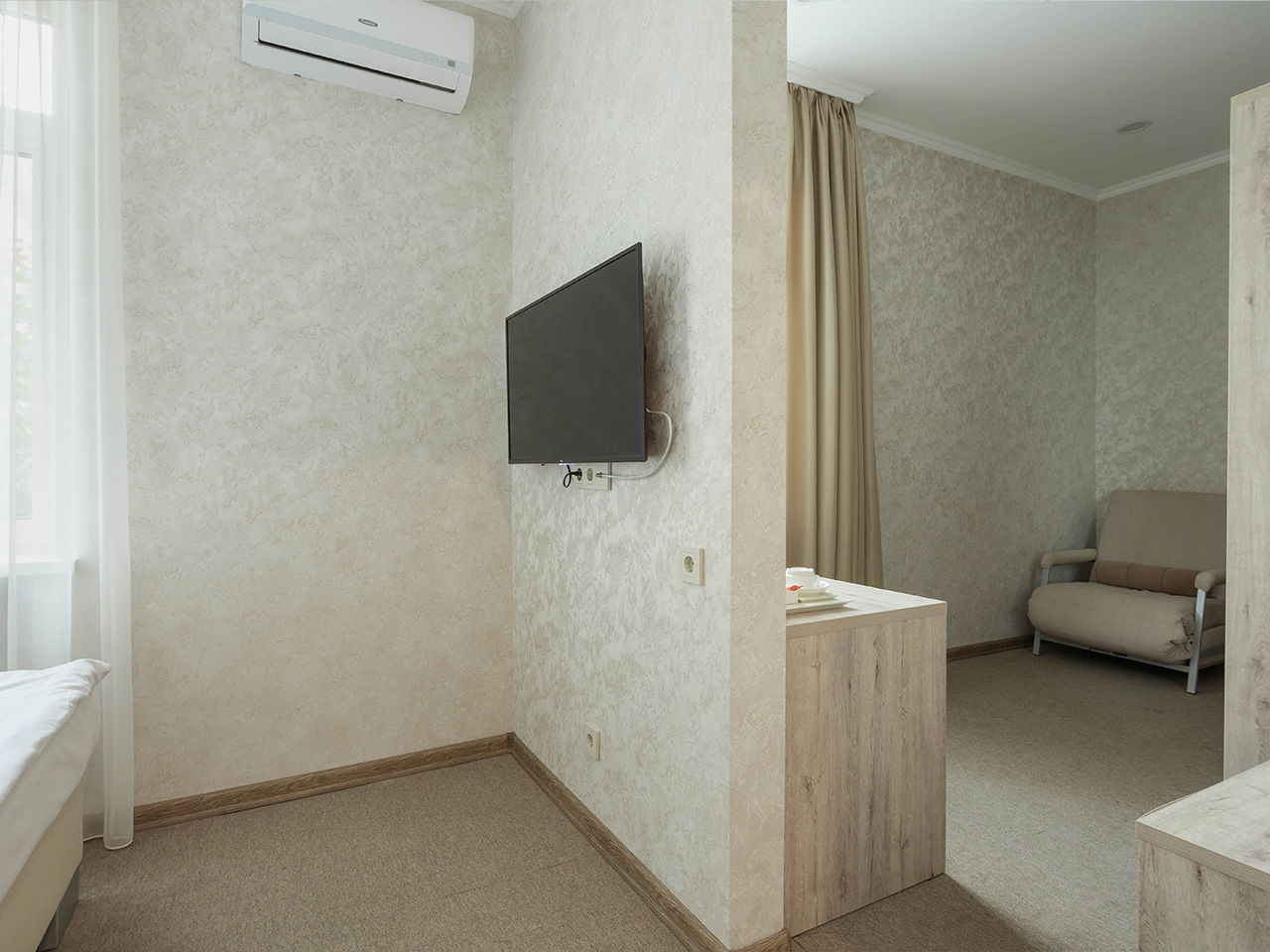 Номера имеют возможность размещения на дополнительном месте: в каждом номере есть раскладное кресло.